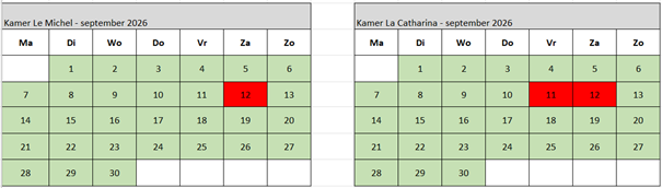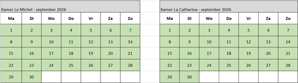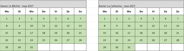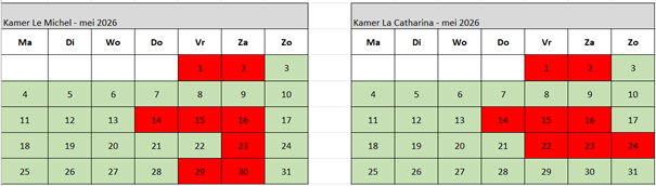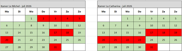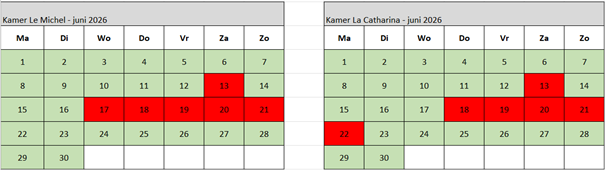 Check onderstaande kalender voor vrije data.